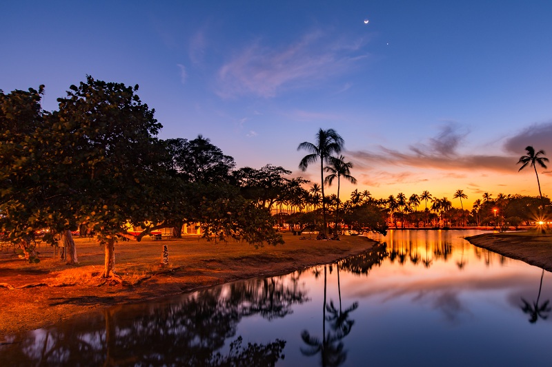 日中のビーチもとても素晴らしいですが、このビーチはワイキキのすぐ近くで綺麗な夕焼けが見られるスポットとしても人気で、LeaLeaトロリーでも