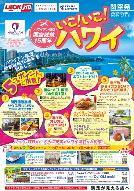 それを記念してハワイアン航空関空就航15周年記念「いこ!いこ!ハワイ」が発売されます。