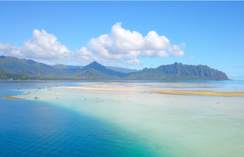 透明度の高いカネオヘ湾でバナナボート、シュノーケリング、サンドバーウォークなどの